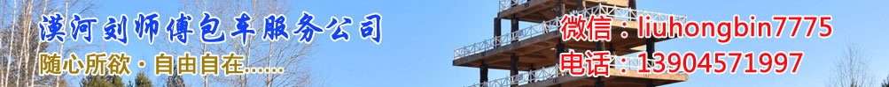 本公司是一家為所有來漠河的朋友們提供包車---線路推廣介紹--賓館酒店預訂---漠河到呼倫貝爾草原--漠河到黑河境外俄羅斯--五大連池溫泉度假--丹頂鶴故鄉扎龍濕地等有關精品線路安排以及提供包車服務的專業的地接服務公司, 公司有專業的導游和領隊,配備五座~七座~十一座--十五座等各種類型保險齊全的車輛,有多年駕乘經驗的司機隊伍,漠河劉師傅真誠的為每一位想來漠河的外地朋友提供一個安全-舒適-便捷愉快的旅游出行環境,期待和所有的朋友們合作。